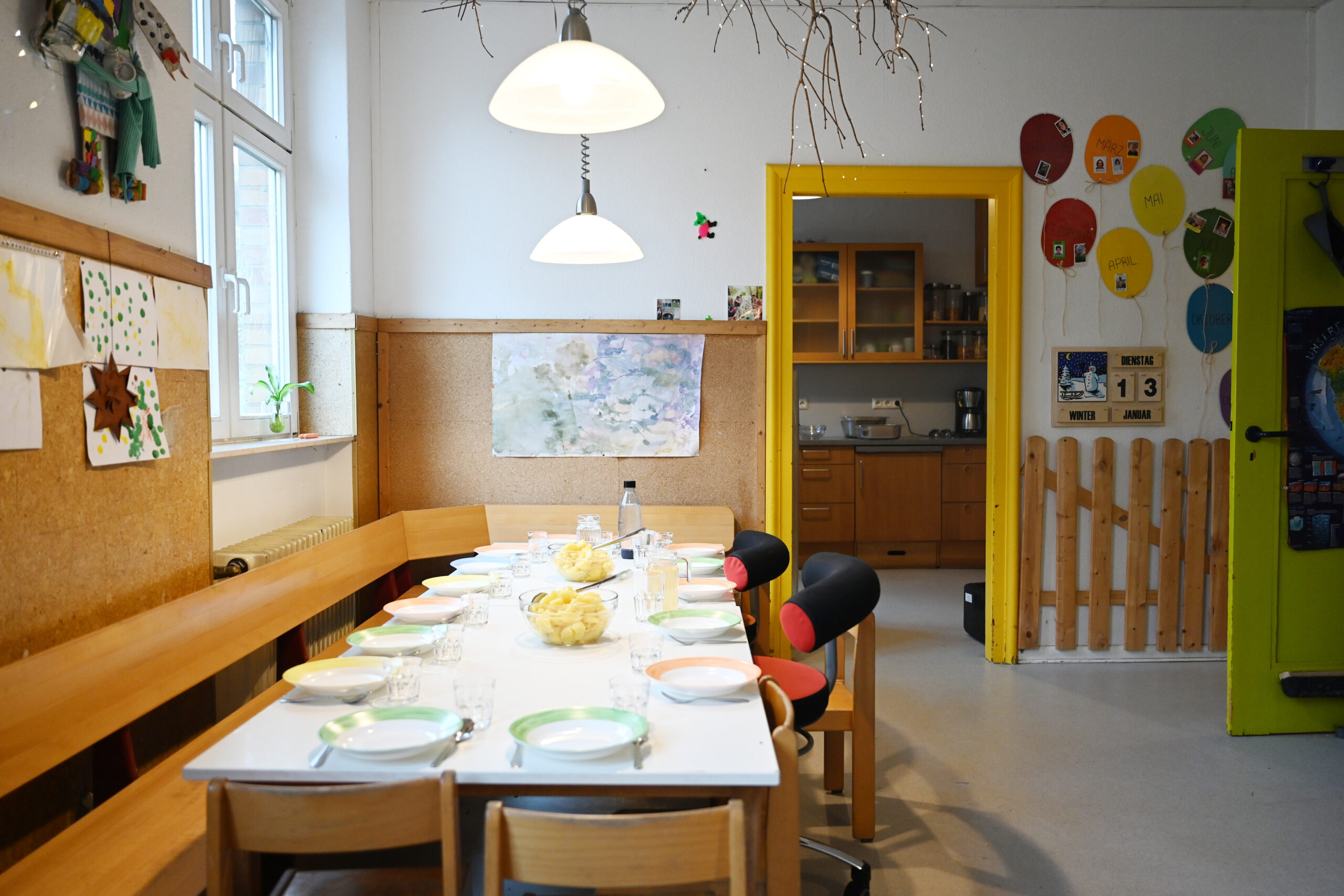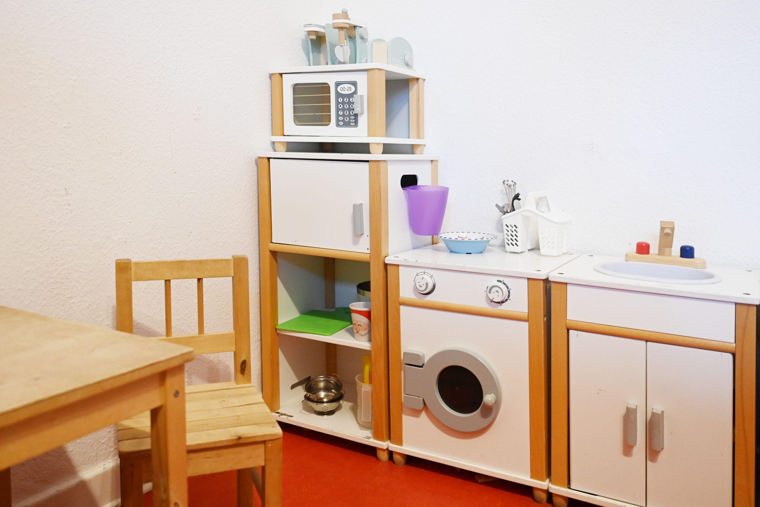 Unsere Räume sind hell, offen und voller Möglichkeiten: Bewegungsbereiche, Rückzugsorte, das Atelier, das Lesezimmer und natürlich unser großer Garten mit vielen Naturerlebnissen.